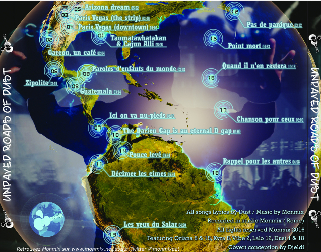 Notes de Monmix : Une famille, identifiée sur le net sous le pseudo 'les-ombres' et composée de 2 adultes et 3 enfants ont décidé de partir à l'aventure en camping-car pour un an autour du monde. Monmix dans sa gloptitude a proposé de sponsoriser l'aspect musical de ce périple. Et pour que ce partenariat soit encore plus intense, l'idée d'un 'album de voyage' a fait son chemin...