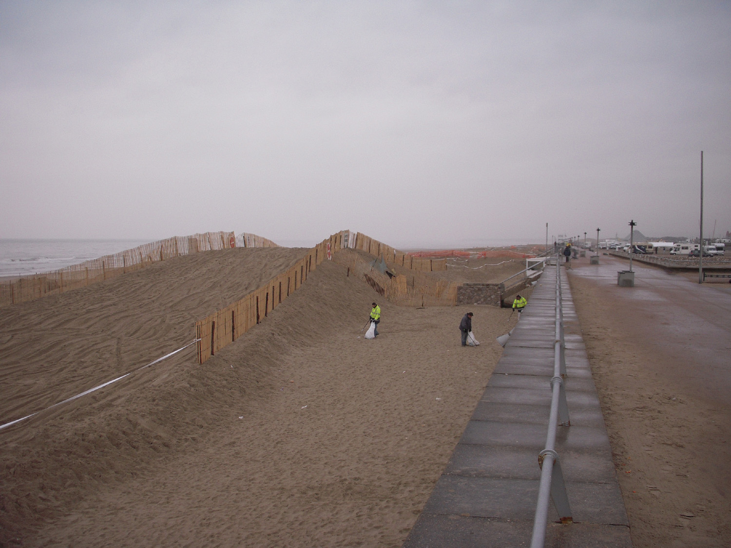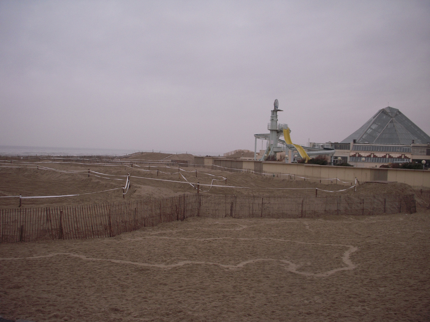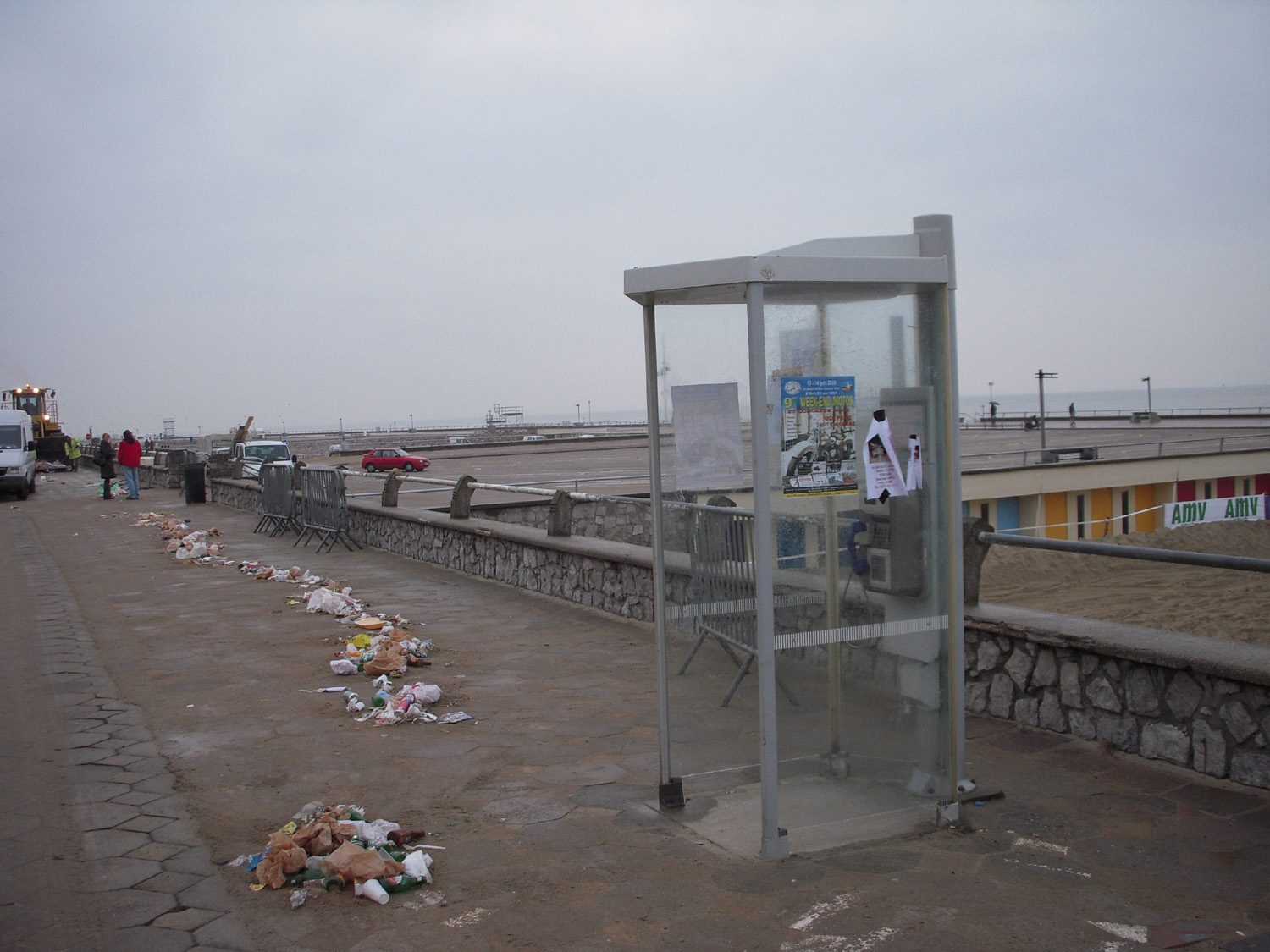 La digue est noyée sous les déchets, et les manèges, et un peu la mer, sont démontés,
