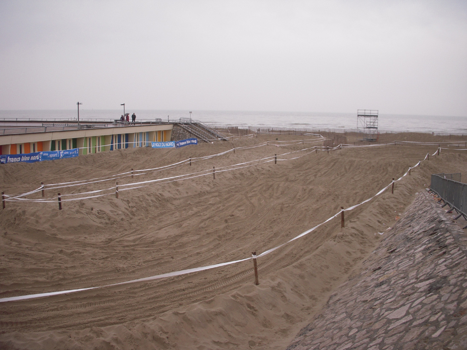 Sur la plage, la piste trône, dans son défi à l'éphémère