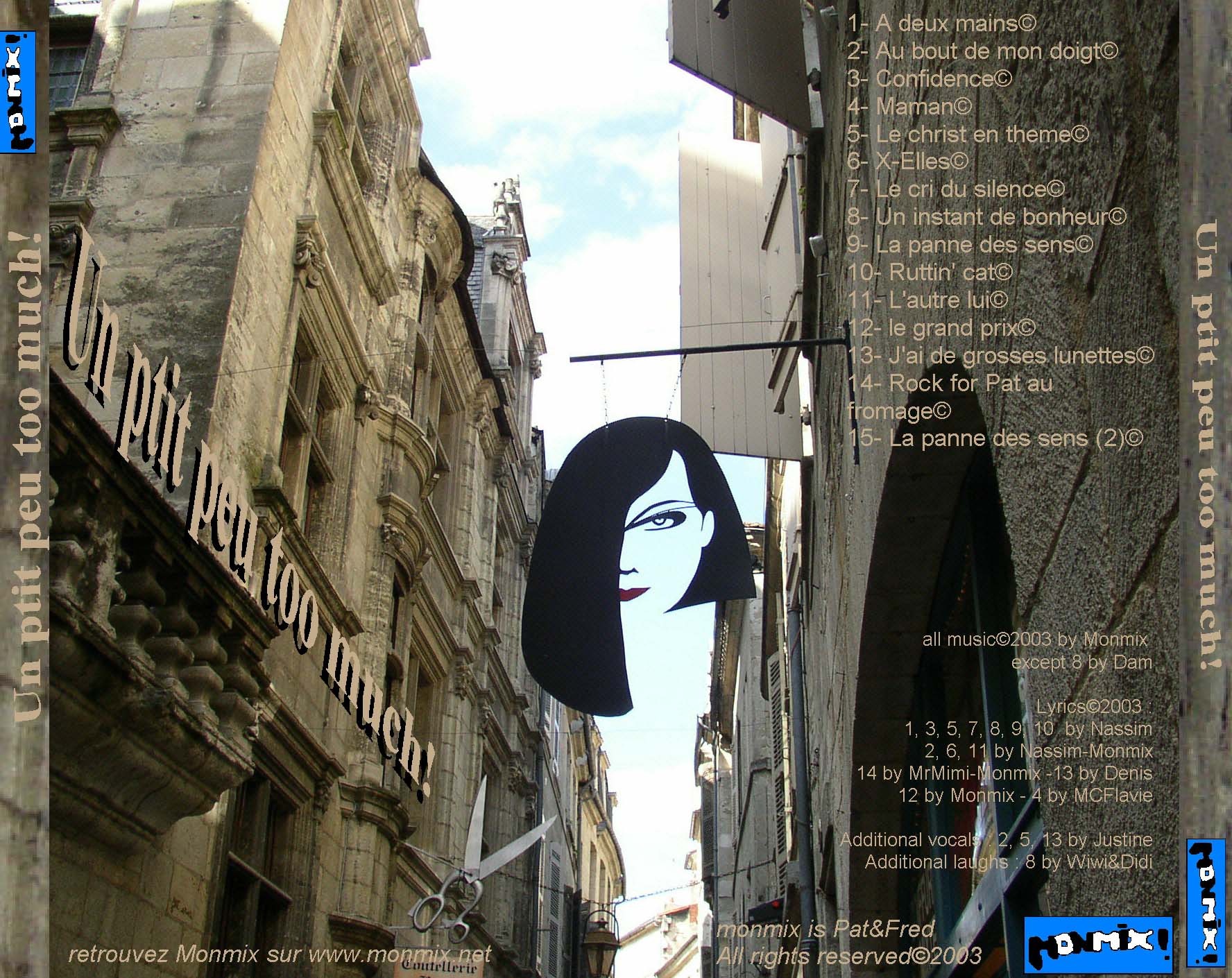 Album qui devait recevoir toutes les chansons qui ne correspondaient pas à l'album concept Horizons... Le resultat est un ensemble de chansons variees, plutot a tendance entrainante. Il faut noter que le titre a été trouvé par LaLo qui, assistant à un brainstorming Monmix pour la recherche des titres, s’est soudain écriée , je cite: " Ils sont tous un ptit peu too much, vos titres...".